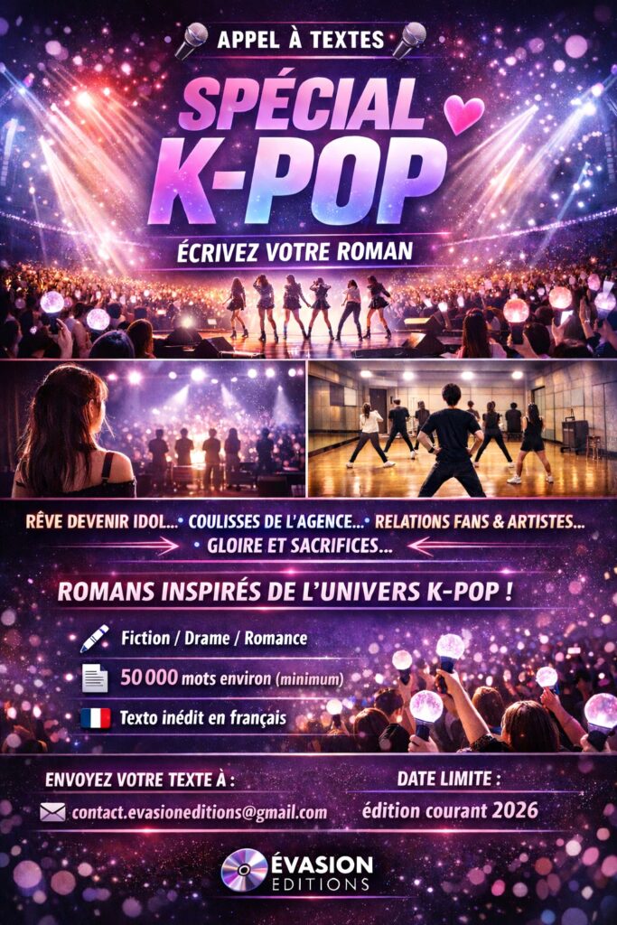 Évasion Éditions lance un appel à textes pour la recherche de romans de fiction inspirés de l’univers de la K-pop.